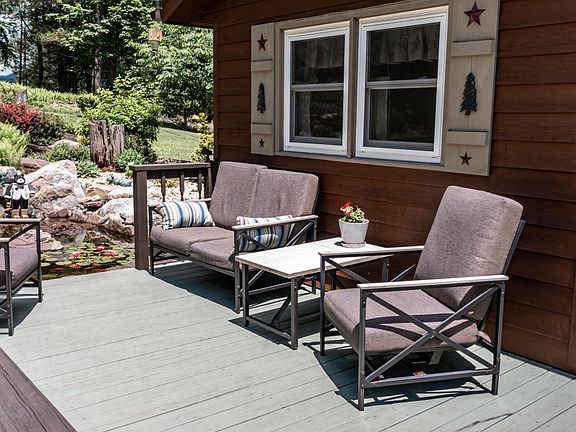 WOW! Elegant country living yet close to town! Stunning inside and out: magnificent stone fireplace, high beamed ceilings, original wide plank hardwood flooring, completely renovated and ready for you! Finished lower level offers extra living space too. The grounds of this property are your oasis - inspiring landscaping with a babbling waterfall into a coi pond, a separate fireplace area, a rear deck overlooking an above ground pool, hot tub area and a dramatic mountain forecast backdrop. WOW! Call/Text today to view what could be your serene retreat! PRIVATE DRIVE - NO Drive byes. Must make an appointment.