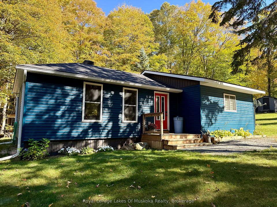 A wonderful offering for someone looking for an off water cottage, a first time home buyer, or someone seeking a one level retirement home close to all amenities. This home has been completely renovated from top to bottom including spray foam insulation under the floor and wonderful landscaping throughout the property. Walk in the front door to an impressive open concept living space where everything has been thoughtfully thought out including laundry area and walkout from the main living area to a new, private deck facing the majestic and calming forest - a superb space for entertaining friends and family. Sitting under the umbrella of mature trees out back is a 120 sq. ft. screen in deck for the pesky bug season and a storage shed for all the necessary lawn equipment. A second driveway from the year round municipal road gives great access for a single or double garage in the future or even just an extra storage building similar to the one sitting on the property now. Walking distance to sandy beaches with a transferrable dock space currently being rented just a 5 minute walk away (ask realtor for details). Easy access from the highway and a short drive from the up and coming village of Burk's Falls or Huntsville this property is great for everyone.