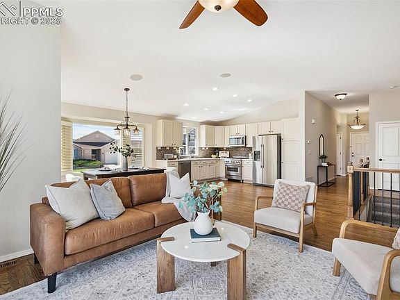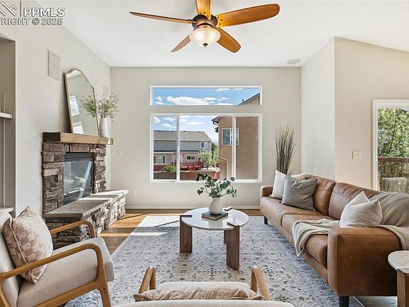 Welcome to this STUNNING ranch-style home on a spacious corner lot with BREATHTAKING MOUNTAIN VIEWS, located in the highly sought-after Struthers Ranch neighborhood of Colorado Springs! Enjoy main-level living at its finest in this bright and open floor plan where luxury meets comfort! The interior has been freshly REPAINTED, hardwood floors REFINISHED and BRAND-NEW carpet installed throughout! The inviting living room features a stone gas fireplace and a stylish ceiling fan! The kitchen is equipped with stainless steel appliances, including a gas range, perfect for the home chef! The spacious primary suite offers spectacular views of Pikes Peak though bay window, a walk-in closet, and an ensuite bath with a walk-in shower! Main level offers two additional bedrooms, full bath and laundry! Downstairs, the expansive garden-level basement provides incredible flexibility with the large rec room, fourth bedroom and full bath! Plus extra storage room could easily be converted into a fifth bedroom! Step outside from main level deck to the large, fenced backyard, ready for your personal touch—perfect for outdoor fun or relaxing while enjoying the gorgeous Colorado sunsets! Garage is oversized with workbench and storage shelves! Ramp can easily be removed for 2 car access (if necessary)! Multiple ceiling fans and AC too! This home is ideally located near shopping, dining, parks, and trails, with quick access to I-25 for an easy commute to both Colorado Springs and Denver! Situated in the award-winning District 20 school district and just minutes from the U.S. Air Force Academy—watch their thrilling air shows right from your own deck! Don’t miss this incredible opportunity to own this beautifully updated home in one of Colorado Springs’ most desirable communities!