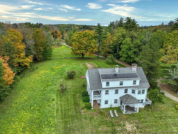The Wild House built in 1917 sits peacefully on 5.8 acres accented with blueberry bushes and open fields. One can imagine the dining room has been a place of many dinner parties and celebrations over the years with high ceilings, maple hardwood floors and a fireplace to set the tone. The fireplace accents the large formal living room with built-ins, exposed beams, and window seats that offer comfort and views to the outdoors that create a sense of coziness. The handsome maple staircase and bannister take you to the second floor with 5 bedrooms, 2 of which share a Jack & Jill 3/4 bath. You have access from two bedrooms on to the stately balcony that overlooks the fields. On the third floor you will find an updated 3/4 bath with a large claw foot tub for soaking and relaxation. South facing solar panels owned by seller. Amenities and recreation abound in this region, hiking, golfing, swimming, skiing just to name a few. Town water and sewer. Enchanting property that is sure to warm your soul and bring you back to yesteryear. Looking for that special Buyer who can see what was and can be again. All offers due by 10-7-2024 @ 1:00.