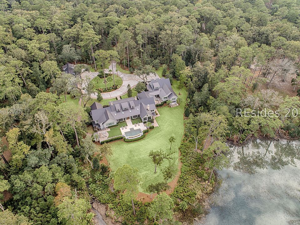 Experience Lowcountry luxury and coastal charm at its finest in this private, gated 10-acre waterfront estate. This preeminent property gracefully commands over 658 feet of the pristine May River shoreline within the highly sought after Palmetto Bluff community. Exuding timeless coastal beauty, the estate-known as Heron Hall-is a true sanctuary where nature and refined living exist in perfect harmony. Offering panoramic water views, impeccable design and endless amenities, this expansive compound includes a main residence and a fully appointed guest house, offering a total of 9 bedrooms, 9 full baths, and 2 half baths - providing both convenience and privacy for family and guests alike. Step inside to discover interiors with unparalleled attention to detail including exquisite millwork, reclaimed wood flooring, and soaring beamed cathedral ceilings. Each living space captures breathtaking panoramic views, blending timeless architecture with modern luxury. The private primary wing is a serene retreat with sweeping river and marsh views, dual spa-inspired bathrooms, and expansive custom closets. The heart of the home is the fully appointed gourmet kitchen, open to the breakfast and family rooms for effortless gathering. Formal and informal living and dining rooms invite both sophisticated entertaining and relaxed day-to-day living. The lower level offers exceptional entertainment spaces with media and game rooms, a temperature-controlled wine room, craft and wrapping room, pressing room, two bunk rooms, and a private guest suite with its own entrance. Outdoor living is equally spectacular - a spacious screened porch, infinity-edge pool, and outdoor fireplace create the ultimate setting to fully embrace the lifestyle this exceptional home affords. Additional highlights include extensive conditioned storage, five oversized garage bays, two additional garages for bicycles and golf carts, smart home technology, advanced security, a central mechanical building, and a full-estate generator. The highly acclaimed Montage resort community of Palmetto Bluff is a 20,000-acre guard-gated community nestled along the May River between Hilton Head Island and Savannah, Georgia. This Lowcountry masterpiece is truly a canvas for a life lived with passion and purpose and has been curated for comfort, hospitality and privacy.