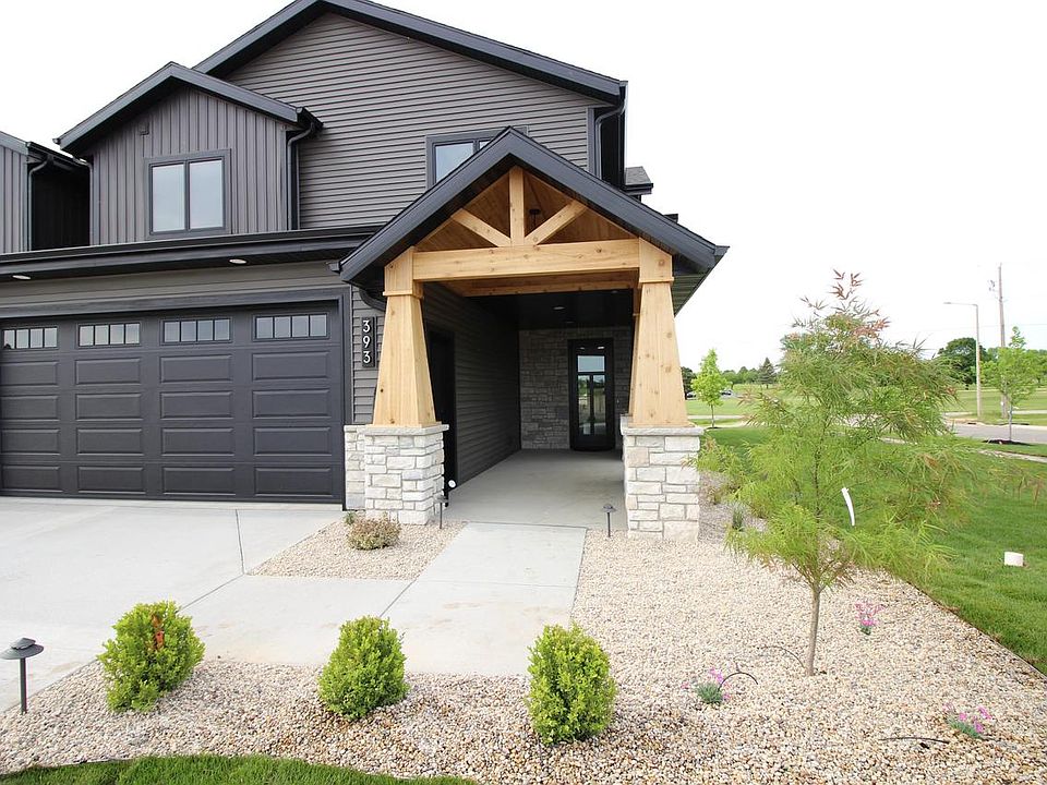 This new construction condo overlooks Oak Ridge Golf Course & is located in Milton's newest residential development. As you walk through the front door you are met with 18' ceilings that showcase the open concept kitchen, dining & living room. The living room features a gas fireplace with stone surround & direct access to your private Trex deck. The primary bedroom is located on the main floor with coffered ceilings, a bathroom that features a double vanity, low threshold shower entry & a walk-in closet. Also on the main level you will find your laundry room & half bath. The upstairs features two bedrooms, an additional full bath & a loft space open to below. The basement has an egress window & rough plumbing for a future bathroom.