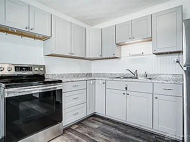 Stylish coordinating countertopFresh contemporary lookChic backsplashCozy layoutOversized private lotNewly renovated spaceModern wood-look flooring