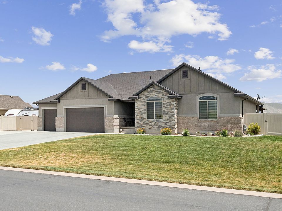 Experience Serene Living at 393 S Roadster Ln: A Custom Masterpiece in Grantsville's Coveted Carriage Crossing! Nestled on a generous half-acre lot within the very desirable, family-friendly gated community, this stunning home offers the perfect blend of luxury, comfort, and functionality. Boasting an expansive 3,380 square feet with a thoughtfully finished basement, this home presents an unparalleled living experience for families and entertainers alike. Step inside to discover a meticulously crafted residence featuring 5 spacious bedrooms and 3 beautifully appointed bathrooms. The open and inviting floor plan provides ample space for everyday living and grand gatherings. Beyond the impressive interior, the outdoor amenities are truly exceptional. Embrace the tranquility of the beautiful mountain views that greet you from both the front and back yards, creating a picturesque backdrop for daily life. The heart of outdoor entertaining awaits with a custom-built timber frame pavilion and a cozy fire pit, offering an extended living space perfect for hosting family and friends year-round. For the adventurers, a forty-foot RV pad with convenient power hookups ensures your recreational vehicle is always ready for its next journey, securely parked within the fenced backyard. The property also features a 4-car garage and elegant stucco exterior, adding to its curb appeal and functionality. The finished basement is a true asset, providing a versatile space ideal for a large family or for offering out-of-town visitors their own private retreat. Enjoy the benefits of a peaceful, small-town atmosphere in Grantsville, known for its light traffic and community feel. This home's prime location is less than 1 mile from a new fantastic elementary school, making school commutes a breeze. While enjoying the quietude of Grantsville, you're just 15 minutes from Tooele City, offering essential amenities including a hospital, medical services, diverse shopping, and an array of restaurants. For travel and entertainment, Salt Lake City International Airport is a mere 30-minute drive, and for a fun getaway, Wendover is only 90 minutes, featuring concerts and exciting entertainment. This remarkable property at 393 S Roadster Ln is more than just a house; it's a place to create lasting memories, offering space, comfort, and an enviable lifestyle in a welcoming community. Don't miss the opportunity to make this dream home yours!
