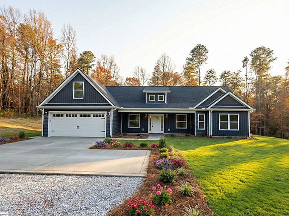 Discover this beautifully crafted 2,255 square-foot new-construction ranch home offering 4 bedrooms, 2 baths, and a spacious bonus room above the two-car garage. The thoughtful floor plan opens with a sweeping cathedral ceiling over the main living area and a welcoming fireplace that immediately creates a comfortable, inviting atmosphere. A bright breakfast area wrapped in windows brings in natural light throughout the day, while the separate dining area overlooks the front yard, providing a great setting for everyday meals or hosting guests. The kitchen and bathrooms feature custom hardwood cabinetry paired with granite countertops, upgraded plumbing fixtures, and a coordinated upgraded lighting package throughout the home—adding both style and long-term value. A classic rocking-chair covered front porch introduces the home’s traditional Craftsman character, where the builder’s attention to detail is evident in every selection and finish. The primary bedroom includes a pan ceiling and offer a full bathroom with a garden tub, separate stand-up shower, and generous space for relaxing and unwinding. The additional bedrooms are thoughtfully designed, and the bonus room above the garage offers flexible use for media, hobbies, office space, or play. Sitting on over an acre in a quiet setting, this property offers the kind of privacy many buyers hope for while still keeping you within a short drive of Travelers Rest and Greer. Outdoor enthusiasts will find no shortage of activities—explore the hiking trails at Paris Mountain State Park, bike the scenic Swamp Rabbit Trail, or spend a weekend fishing in the lakes and mountain streams that wind through northern Greenville County. Travelers Rest is known for its lively Main Street, vibrant local restaurants, farmers markets, and easy access to some of the Upstate’s most popular outdoor destinations. For buyers who move quickly, there is still time to select certain flooring and paint colors to personalize the home before completion. Construction is progressing smoothly, and this home can be move-in ready in January.