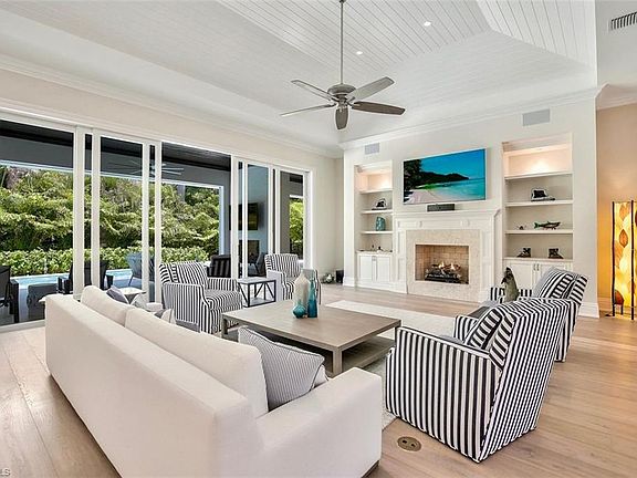 H.13169 A significant price reduction, must make this the best value 2017/2018 home in The Moorings. Timeless elegant design, highest quality construction & premium location come together in a stunning home positioned on one of the best Moorings streets. Quiet Spring Line Drive, West of Crayton Road is a short walking distance to the private Moorings Beach Park. This luxurious home offers the perfect balance of casual & elegant living. Built by Dillman Construction, one of Naples premier builders, the home features wide-plank Legno Bastone European oak floors, extensive molding, and custom woodwork throughout. Gorgeous outdoor area, w/ 40-foot lap pool & spa, outdoor kitchen and open view gas fireplace. Other great features include Sub Zero & Wolf appliances, hidden walk-in pantry, & coral stone pool deck. Current owner spent over $70k in further improvements including a 2 ton garage a/c, attic dehumidifier, plantation shutters, water filtration system, additional wood flooring, landscaping & more. Call today for your private showing.