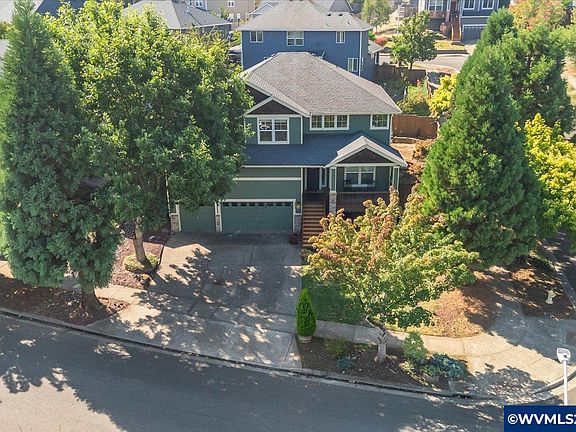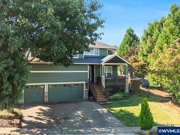 Enjoy comfort and style with ample space in this beautiful five-bedroom home located in the desirable West Salem Hills. This home features an open floor plan, tall ceilings, a gas fireplace, abundant natural light, and sweeping views. The kitchen is a chef's delight, boasting a gas range, stainless steel appliances, a large island with an eating bar, and a pantry. For added convenience, the main level includes one bedroom and a full bathroom. Upstairs, you'll discover the primary suite, which offers vaulted ceilings, a gas fireplace, a huge walk-in closet, and a private, spa-like bathroom complete with double sinks, a soaking tub, and a walk-in shower. The upper level also includes three additional bedrooms, another full bathroom, and a well-appointed utility room. Step out back to a fully fenced, low-maintenance yard featuring a garden and a patio with a gazebo, perfect for outdoor enjoyment. The triple-car garage provides extra storage space. Updates include a new HVAC system. This home sits on a large corner lot, conveniently located close to excellent schools, parks, and other amenities.