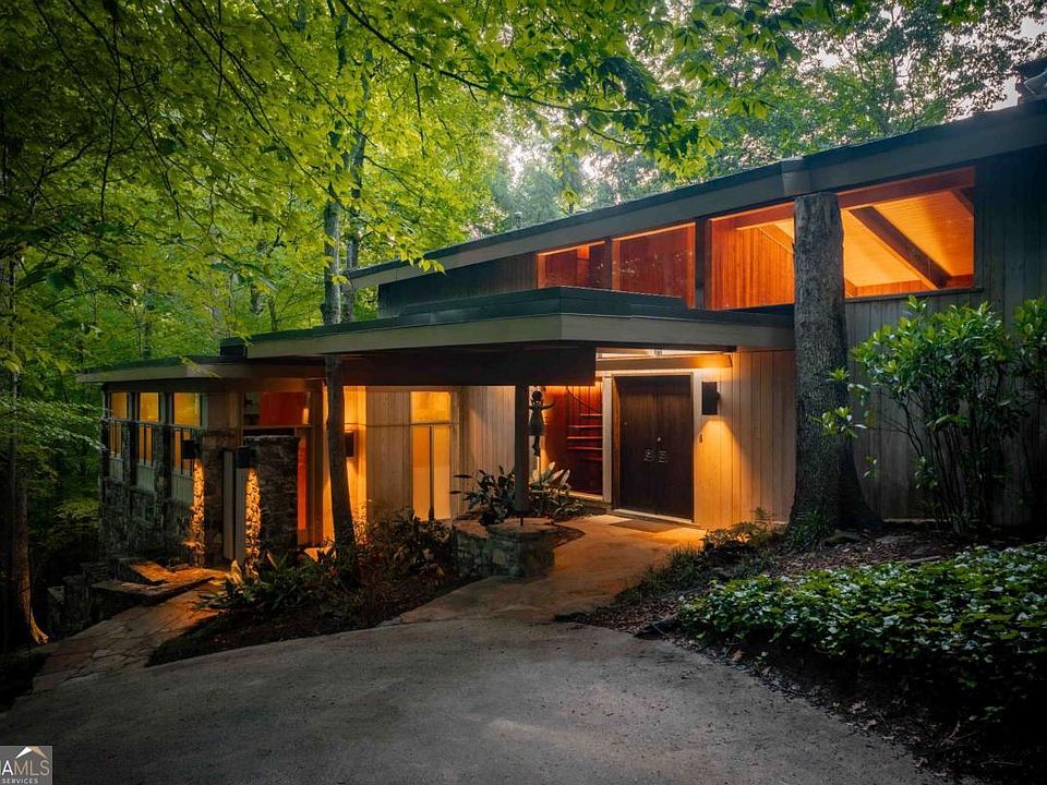 Welcome to THE FALLS. A period correct mid-century modern masterpiece overlooking a 120 FOOT CASCADING WATERFALL! Honoring timeless design while embracing progressive innovation & celebrating nature as a lifestyle this home is an absolute one of one. Designed by renowned Atlanta architect Herbert Millkey, the home is a showcase of natural materials and meticulous craftsmanship-from hand-selected stone to wormy chestnut paneling milled from a single, historic tree. Every element inside reflects a commitment to organic architecture, with walls of glass that dissolve the boundaries between structure and setting, and private balconies extending from every bedroom overlooking the dramatic, ever-present cascading WATERFALL that flows just beneath the edge of the home. Spanning three unique levels, the home is designed for flexibility and generational living, including an award-winning "age-in-place" addition that functions as a fourth bedroom, private studio, or guest retreat. The interiors flow seamlessly, anchored by a recently updated kitchen connected by sight lines that always lead back to THE FALLS. A spa-like primary suite boasts a Japanese-inspired garden and bath, creating a personal retreat that feels rooted in calm and balance. Four bedrooms. Three baths. Multiple living spaces. Perfect balance. Throughout the home, there's a constant sense of movement and stillness-of water, wood, and stone working together in quiet harmony. Expansive outdoor living spaces are thoughtfully designed for year-round enjoyment overlooking almost 4 acres of preserved nature and a climax Piedmont Forest that is literally in the heart of the city. There is over a mile of non-contiguous walking trails, bridges, & sitting areas spread across the property. Fed by the headwaters of Peavine Creek that stretches over 500 feet in length across the property, the WATERFALL itself spans 100 foot in width, 120 foot in cascading length, & has an island in the middle of it's two outpourings flooding the home with ever present sounds & visuals of wonder & beauty. The striking & distinctive nature of this matchless home provides a once in a lifetime opportunity to live in the center of nature while also living in the center of everything. Just 6 blocks from Emory Village & the CDC plus Less than a mile to Downtown Decatur & Druid Hills Golf Club! An unprecedented chance to escape the city while still living in the center of it! THE FALLS is not just a home, but a living experience-where architecture doesn't sit on the land, it becomes part of the home's illustrious story...where nature comes first. BRILLIANT!