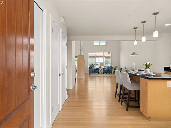 Cozy gas fireplacePenthouse loft condoWalk-in closetHigh vaulted ceilingsExpansive windowsGourmet kitchenWall-to-wall bamboo flooring