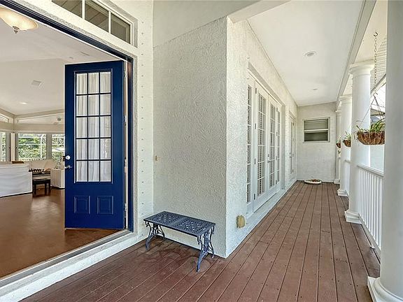 Coastal Elegance on Phillippi Creek! Custom-built by Coachman Homes, this exceptional waterfront residence blends timeless architecture, privacy, and an ideal Sarasota location. Set within an intimate gated enclave of just nine homes, the property spans nearly three-quarters of an acre and offers over 190 feet of private frontage on the scenic Phillippi Creek—an idyllic backdrop for daily living and entertaining. Notably, the house structure has had no water intrusion from storms/hurricanes during the owners’ tenure. Inside, approximately 3,500 square feet of living space unfolds in an open, light-filled layout with four bedrooms, a family room, and a dedicated office. A columned front porch and double-door entry lead into a grand living room featuring vaulted ceilings, a cultured stone fireplace, and a wall of glass doors that open to the screened lanai and pool. The adjacent dining room creates an elegant setting for gatherings, while the open-concept kitchen connects seamlessly to the family and casual dining areas—each overlooking the outdoor living space. The chef’s kitchen features custom cabinetry with under-cabinet lighting, granite countertops, tile backsplash, breakfast bar, and stainless-steel appliances. A split-bedroom plan ensures privacy. The primary suite is a serene retreat with French doors to the deck, a large walk-in closet, and a spa-style bathroom complete with dual vanities, walk-in shower, soaking tub, and private water closet. A flexible office adjoins the suite, ideal for working from home or quiet reading. On the opposite wing, three guest bedrooms share two full baths, offering comfort for family and visitors alike. Additional features include Lauzon hardwood floors throughout, recessed lighting, plantation blinds, hurricane shutters, two-zone A/C, re-screened pool cage (2024), a spacious laundry with newer washer and dryer, and a three-car garage with abundant storage. Outdoor living takes full advantage of Sarasota’s year-round sunshine. A large, screened lanai with swimming pool, spa, and waterfall fountain invites relaxation, while the full-length covered deck—with outdoor kitchen—encourages al fresco dining. Lush tropical landscaping guarantees privacy, and the large fenced portion of the backyard offers space for pets and play. A brick walkway leads to the private dock, equipped with water and electric. With only two bridges to Roberts Bay, boaters enjoy quick access to the Intracoastal Waterway and Gulf of Mexico. This residence combines the serenity of a secluded estate with unmatched convenience—just minutes to Siesta Key Beach, Downtown Sarasota, and The Bay Park. Fine dining, boutique shopping, cultural venues, and waterfront recreation are all within easy reach. In this rare nine-home community, you’ll experience the perfect balance of coastal tranquility and city sophistication—a true Sarasota lifestyle.