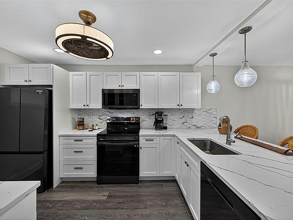 Stunning Fully Renovated 2BR/2BA Condo with Resort-Style Amenities in a 55+ community! Beautifully updated, light-filled condo featuring an amazing pool view from the screened terrace with accordion shutters. This modern unit offers impact windows, water-resistant laminate flooring, and an in-unit washer and dryer. The open kitchen showcases wood cabinetry, quartz countertops, a tile backsplash, and black stainless-steel appliances, opening to a spacious dining area perfect for entertaining. The primary suite includes dual walk-in closets and a sitting area, and both bathrooms have been completely renovated with elegant finishes. Maintenance includes cable, HBO, and internet. Just move right in! Located in a secure, 24/7 gated 55+ community with tennis and pickleball courts, a heated pool, clubhouse, BBQ area, and more. Close to shopping, dining, and entertainment. A perfect blend of comfort, style, and convenience!
