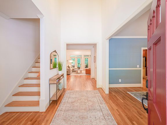 Discover the perfect floor plan with this custom-built 4-bedroom, 3.5-bathroom, 9'+ ceilings on main, 2-car garage home designed for effortless first floor living. The main floor features a spacious great room with vaulted ceilings, built-ins, and a two-sided gas fireplace, seamlessly connecting to a large eat-in kitchen that shares the fireplace. The kitchen boasts granite countertops, a center island with bar seating, stainless steel appliances, a pantry, and casual dining area. Formal meals and special occasions can be held in the adjacent dining room. For outdoor enthusiasts, the extraordinary, screened porch offers direct access from the great room and kitchen providing a serene spot for relaxation, or a perfect venue for entertaining family and friends as they flow effortlessly from indoors to outdoors. The owner's suite is a true retreat featuring a newly updated primary bathroom and a walk-in closet. It's strategically separated from the two secondary bedrooms that share a Jack & Jill bathroom and are located on the opposite side of the house. The fourth bedroom, with its ensuite bathroom, is situated on the second floor. Additionally, this property boasts a spacious unfinished walk-in attic on the second floor with incredibly high ceilings, and (an estimated) 400+ square feet presenting an excellent opportunity to finish additional space. The possibilities are endless. Located just 5 minutes from shopping and restaurants, 10 minutes from Duke University, and 15 minutes from UNC, this home offers an enviable location. With its outstanding features, potential for expansion, and prime location, this home truly has it all!