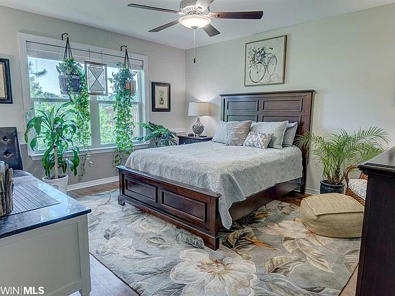 One of the best houses in Foley listed for under $200,000. Better than new, this Truland built home is less than 1 year old and has been completely tricked out. It is a must see! Starting in the yard, you will find that it's fenced with cute iron gates, it has beautiful landscaping with palm trees, bottle brush, jasmine and more. There's a putting green, a patio with a Pergola, and a new storage shed with cute details. The original covered porch has been enclosed and is now a peaceful sun room with a water feature. Inside you will see upgraded details through out. The kitchen has beautiful granite counter tops and elegant subway tile back splash. Wainscoting has been added to the dining area. There is NO carpet, the entire house has gorgeous luxury wide vinyl plank flooring. The 3rd bedroom has been converted to an in home office that has natural light and a cozy feel . Even the laundry room has been upgraded with cabinetry and hanging rods. The 2 car garage not only houses a car, one side has been converted into an outdoor kitchen area with cabinets, hood fan, back splash and a workbench. The location is on the west side of Highway 59, it's close to large shopping stores, many restaurants, and just minutes to our sugar sand beaches. Built by Truland Homes- Whitney Floor Plan-comes with a 10 year builders warranty.
