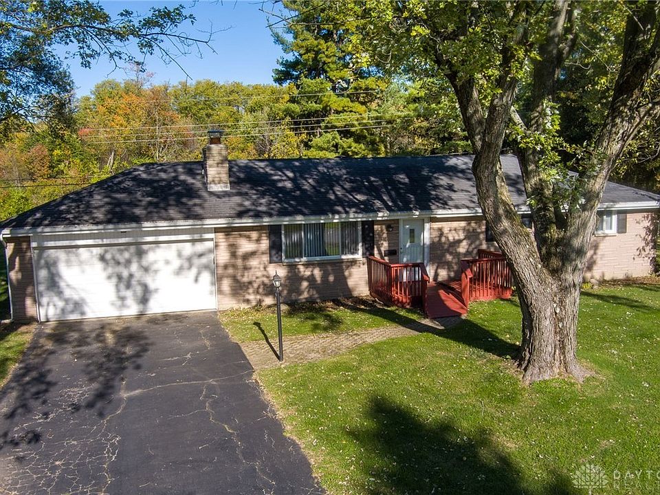 Nice Brick Ranch situated on a near 1/2 acre lot with mature trees--beautiful setting! This home offers 3 bedrooms, a full bath, a spacious living room, and a kitchen with breakfast room for dining. The additional back room provides extra space for a flexible lifestyle, e.g. sunroom, family gatherings, entertaining, etc.; Includes a 2-Car Attached Garage PLUS an Additional Detached Garage which includes shelving, cabinets and cement flooring--Perfect for a workshop and extra storage! Large back deck and great yard space. Convenient proximity to I-675, WPAFB, Shopping, Dining and More!