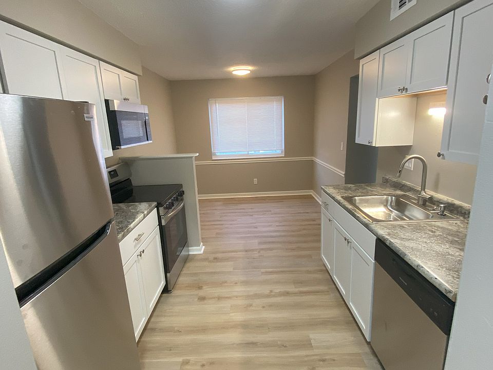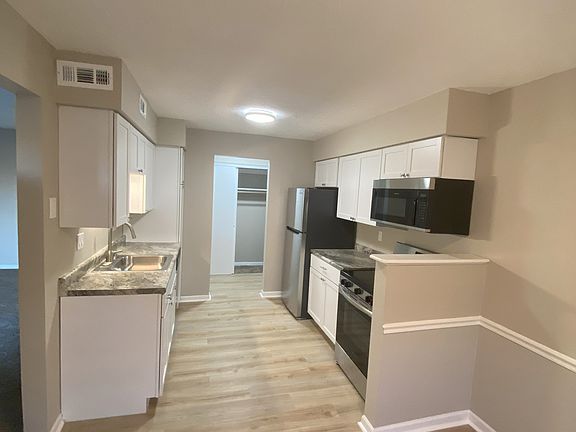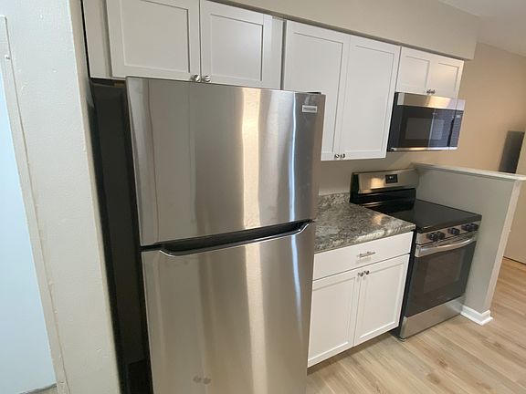 Open House viewing Saturday November 8th 10:30-11:15. This condo features 2 large bedrooms, 1 full bath, and 1 half bath. There is a dedicated laundry room, and it has central heat and air. This unit is on the second floor so minimal steps to reach the door and a balcony that overlooks the parking lot. The condo is freshly remodeled with brand new floors, kitchen cabinets, new stainless steel appliances, new paint, and new fixtures. Also, the front door to access the building does require a key and has an intercom system to allow guests to enter and exit.
