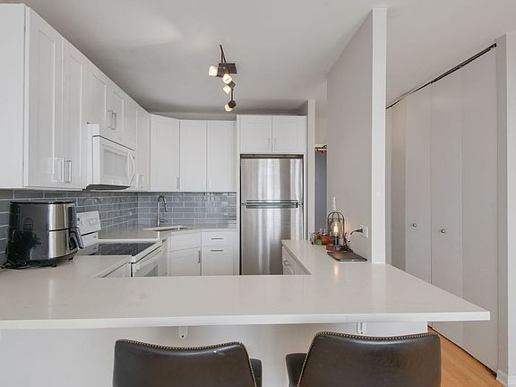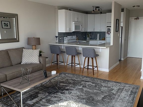 Enjoy full amenity living in this bright and spacious Junior one bedroom unit. Fully updated kitchen offers quartz countertops with eat-in breakfast bar, sleek white cabinetry and stylish backsplash. The open layout offers hardwood floors throughout, stunning south facing views of the skyline and Wrigley field and has just been freshly painted throughout. Updated bathroom also features quartz countertops and a glass enclosed shower. Large closets throughout, the epitome of move-in ready. Valet rental parking available through the building. Building features include outdoor pool with cabanas, grills and herb garden, tennis court, basketball court, dog run, gym, 24hr door staff, package receiving and more.