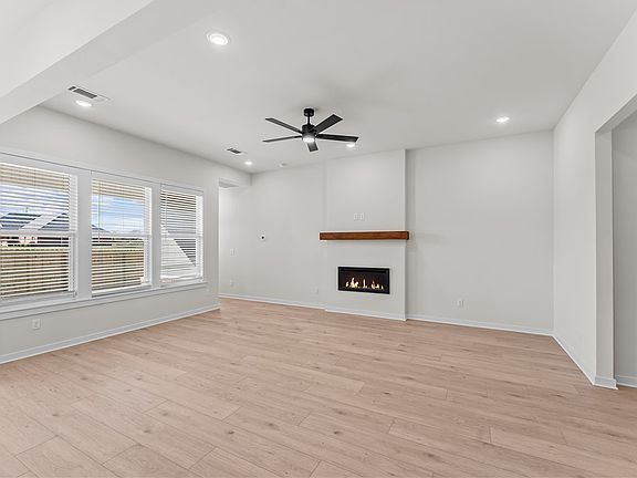 Fredrick plan with 1 level, garage on the right & East facing! 10 ft ceilings in the living room, linear electric fireplace, LVP flooring throughout the main living areas & primary bedroom, quartz countertops & more. Chef's kitchen boasting frigidaire stainless steel appliances, gas range, pantry, quartz countertops, bar pull handles, large island & gorgeous backsplash. Luxurious primary bedroom features abundant natural light, while the spa-like primary bathroom offers a walk-in shower, double sinks, tub & spacious walk-in closets. Additional features include three large secondary bedrooms and a separate laundry room. Nestled on a generous lot with covered patio that overlooks the serene sodded, fully fenced backyard, creating an exceptional living experience. Sturdy concrete siding & brick! Model home located at 3631 Tranquility St-Lot 1.
