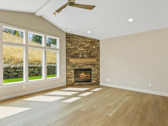 New listing in new phase of Trickle Creek. This is the SunCadia Plan by Paras Homes in a private culdesac. Open Kitchen and great room with tall vaulted ceilings. Painted kitchen with quartz countertops, stainless steel appliances and Luxury Vinyl Plank flooring through the entryway, kitchen, great room, dining room, and hallways. Large Primary bedroom with walk in closet and walk in shower. Has 428 SF bonus room over the garage. Large covered porch and covered patio. Big 4 car garage with openers. Landscaped front and back yard with sprinklers. Floor to ceiling stone with lovely fireplace. Home was just completed.