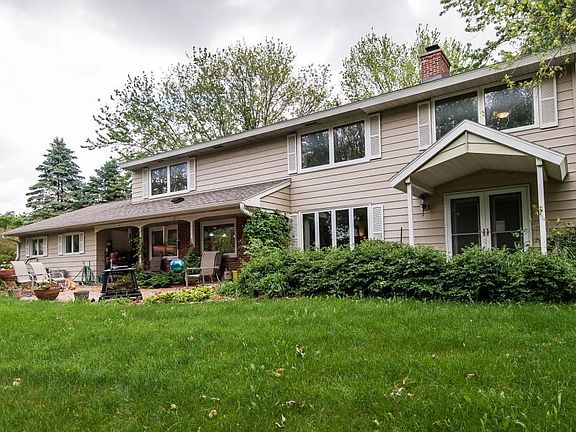 Spacious 4-bed, 4-bath home nestled onto 3.17 acres of woods w/ lush greenery giving you the peace & quiet of country living but is conveniently located within 10 minutes from downtown Rochester & the Mayo Clinic. Relax while enjoying the views on the open-air porch & brick paver patio. Brand new roof in 2019. Inside boasts a lg mudroom w/ a vaulted cedar ceiling, upgraded vinyl flooring, a fully remodeled kitchen with lg pantry, sleek high-quality quartz countertops with a breakfast bar on one side & a deep stainless sink; there are also large, energy and sound efficient windows that allow natural lighting to fill the house. Enjoy main floor living with laundry, a full bedroom en suite & a cozy Living Room with a large fireplace. There are many built-ins, closets & shelves throughout so there is plenty of storage. The 2nd floor hosts a full tiled bathroom & 3 lg bedrooms, including a master suite w/ a private bath & big w/i closet. Lg bonus room perfect for office or hobby/craft room.
