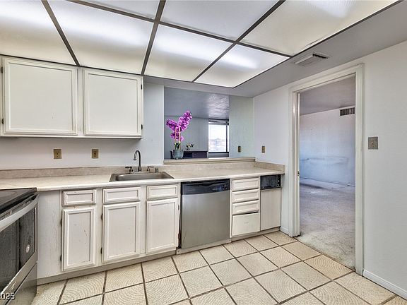 LOWEST price the Tower! 2-bd/2-bth condo with STRIP VIEWS! This highly desirable end-corner unit is specious and has open floorplan with large living room with vaulted ceilings, lot's of natural light, two good size bedrooms and two baths. Amazing views of the famous Las Vegas Strip, Swimming Pool, Sphere and Ferris Wheel directly from your Primary Bedroom windows. Building is recently renovated and has great amenities to include fitness room, movie theater, ping pong table, outdoor BBQ area, tennis & basketball courts. Prime location in center of town with walking distance to UNLV, The Strip, world class restaurants and shows and just 5 minutes drive to the Harry Reid Airport. ***SOLD AS-IS*** Ready for your improvements, lot's of potential. Great investment opportunity.