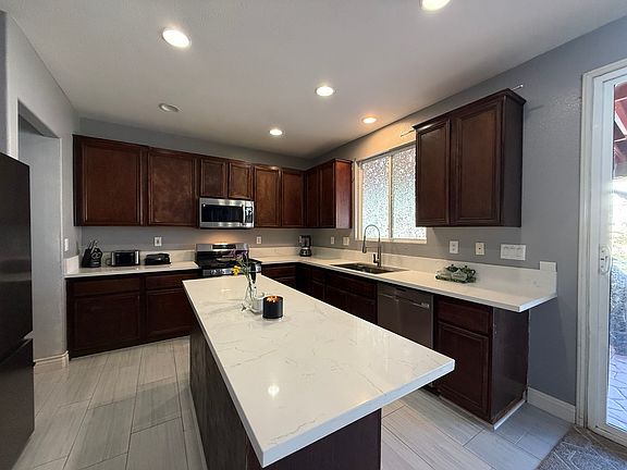 Welcome to this beautifully maintained 5-bedroom, 4-bathroom home in the highly desirable West Palmdale area. With 2,896 sq. ft. of living space, this home offers the perfect blend of comfort and style and significant savings in electric bills as the house has plenty of solar panels to cover that expense at no extra charge. Included in the rent Step inside to find a bright, open layout featuring downstairs tiles and laminate wood flooring upstairs. The modern kitchen boasts sleek quartz countertops and ample cabinet space, perfect for home-cooked meals and entertaining. Upstairs, the expansive primary suite includes a private retreat, ideal for a home office, sitting area, or workout space. The three additional bedrooms provide plenty of room for family, guests, or extra workspace. Enjoy a large backyard, perfect for outdoor gatherings, play, or relaxation. The oversized driveway provides ample parking, and the cul-de-sac location offers added privacy and a peaceful setting. Conveniently located near top-rated schools, shopping, dining, and freeway access, this home is a fantastic leasing opportunity in West Palmdale. All rooms and bathrooms upstairs. Solar Panels are included not extra charge. Tenant to pay all other utilities