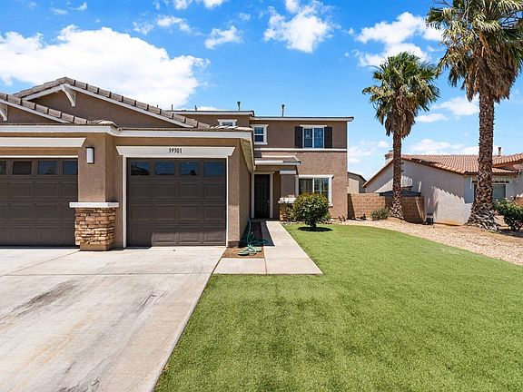 This spacious Palmdale property features a well-designed layout with 5 bedrooms and 3 bathrooms, built in 2003 across 2,668SqFt on a 7,418SqFt lot. The backyard is a highlight, boasting a large pool. Inside, upon entry, a formal living room flows into a bright dining room with expansive windows. The kitchen is equipped with sleek countertops, stainless-steel appliances, and an island, seamlessly connecting to the cozy family room that includes a fireplace and sliding doors. Convenience is enhanced with a first-floor laundry room as well as first-floor bedroom and full bathroom. The rest of bedrooms upstairs are generously proportioned, with the primary bedroom offering an en-suite bathroom featuring a double-sink vanity, separate tub, and shower. Ample parking is available in the large driveway or the 3-car garage, which also offers additional storage space. This gorgeous pool home is conveniently located near Highland High School, parks, markets, and more, this property offers both comfort and accessibility.