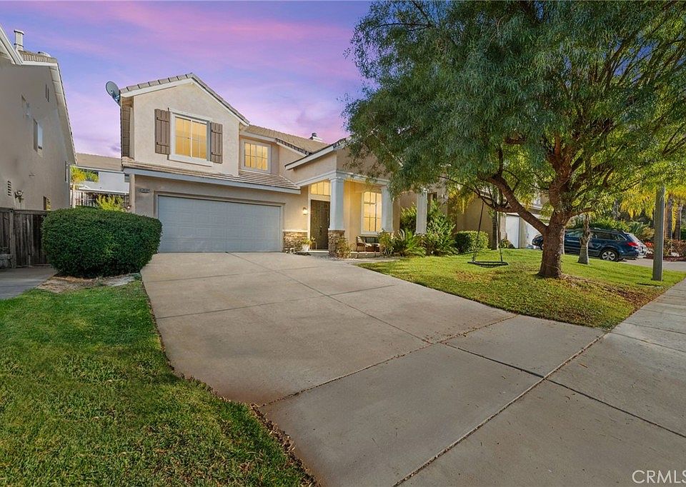 Additional features include a newer water heater, fully painted interior, 2-car garage, and a beautifully landscaped front yard with green grass, rose bushes, and palms for great curb appeal.