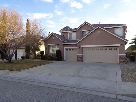 Be prepared to say WOW! This beautiful 5 bedrooms plus a large loft and 3 bathrooms, 3272sf 2 story home located in West Palmdale is ready for you! The formal entry is unforgettable with a turret style design leading to a large Living room/Dining room and Family room all on upgraded wood flooring. 2 fireplaces. Huge kitchen with ample countertop space and an additional service bar adjacent to the Dining room. The kitchen countertops are high grade granite and all white cabinetry. There is a full bedroom and 3/4 bath downstairs and 4 bedrooms up. Large master bedroom with 2 walk in closets and an exquisite master bathroom with dual vanities separated by a deep soaking bathtub. The floorplan is fantastic! Interior laundry has sink and tons of cabinet space. 3 car garage. Front yard is landscaped and rear yard offers water efficient desertscaping. Block wall fencing. Close proximity to all that West Palmdale offers!