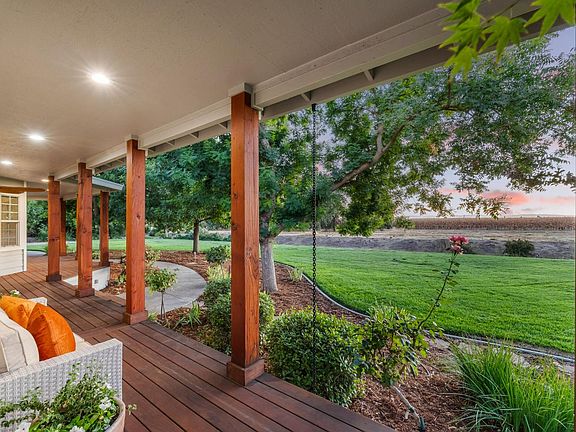 Tastefully updated modern farmhouse with stunning views. Set on close to an acre, this property backs to a hawk preserve and expansive farmland that may never be developed, creating the feeling of wide-open space and privacy with views of the coastal mountains. The entire home has been freshly updated, including the kitchen and bathrooms, with an owned solar array providing efficiency and peace of mind. Expansive indoor-outdoor living is highlighted by a wrap-around deck, ideal for entertaining or quiet evenings at home watching the epic sunsets. Above the garage, a versatile space offers options for a guest suite or private office. The grounds feature grapevines, mature fruit trees, a mini-barn, and a large fenced garden, adding both beauty and function. With its tasteful updates, flexible living spaces, and rare natural setting, this modern farmhouse combines timeless charm with everyday comfort and sustainability.