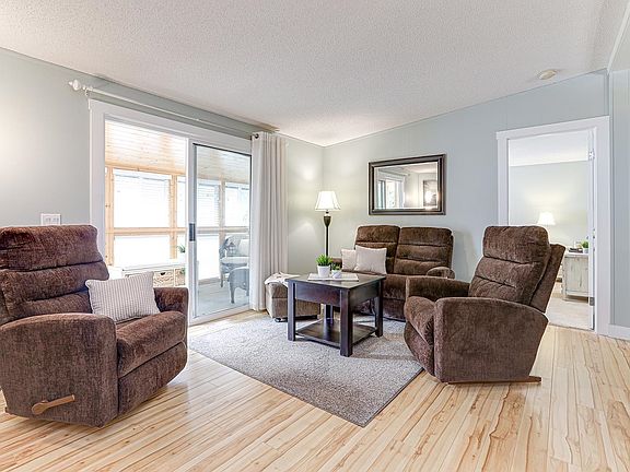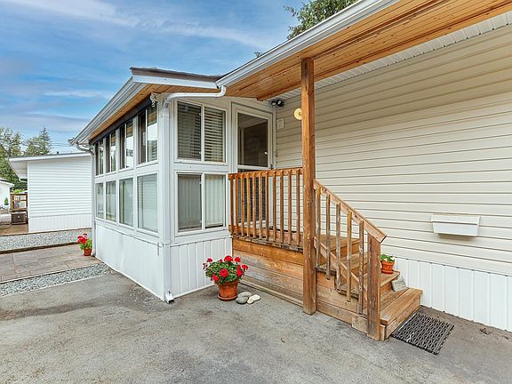 BROOKSWOOD ESTATES - the best in retirement living 55+. The Park is close to many of Langleys amenities. This immaculate, double wide home sits at the edge of the Park, facing beautiful old growth trees. The location is quiet & private. This open and spacious home offers special features; a walk-in jet tub, a very cozy sunroom, large bedrooms, vaulted ceilings and more. Recent upgrades include HWT, furnace & AC, newer roof, shower enclosure, appliances, gas fireplace, light fixtures +. This well maintained home with attention to detail will impress. One small pet allowed - cat or dog. Own 1/72 share/ ownership of Park. NO PAD rental, as Park is self owned. Low $160. monthly maintenance. Ample of parking and reasonable RV parking. The Park is very sought after. Don"t wait to see it.