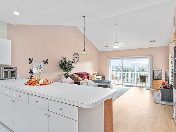 Generous counter spaceNewly replaced flooringNicely appointed kitchenBeautiful lake viewIn-unit washer and dryerVaulted ceilingsNatural light