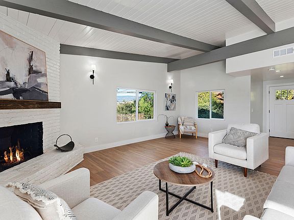 Beautifully reimagined 3-bedroom 2 bath home in the coveted Hope School District. This approx. 1560 sqft ranch style home offers an open concept single level floor plan with cathedral beam ceilings in the living spaces. Gorgeous French farmhouse inspired kitchen with ample cabinetry and wine/coffee bar area. Both bathrooms offer designer style tile work and finishes. The dining room features a large sliding glass door that welcomes abundant natural light and allows for indoor-outdoor California living. The property also includes a valuable detached building perfect for a home office, gym, or hobby room. The generous grounds offer picturesque mountain views, a private garden with a variety of mature stone-fruit and citrus trees. Be the first to enjoy the recent renovations of this home that radiates charm, character, functionality and warmth. The Country-living feel while being close to city amenities make this property a rare find! Schedule your private tour today.