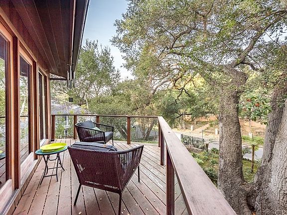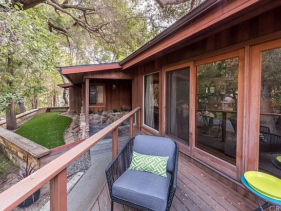 Nestled into a verdant hillside on one of the most sought-after cul-de-sacs in Sherman Oaks, this spacious single-level home feels like you are in the countryside while located only minutes from Mulholland Dr., Bel Air, the 101/405 interchange, with easy access to the Westside. Dramatic floor to ceiling windows off the main living space look out over a beautiful, leafy front yard, lined with huge, old growth oak trees. Guests enter by crossing a fairy tale bridge over a private stream. Large open living spaces, beautiful wood flooring, window trim and ceiling panels suggest both a mid-century and craftsman design. The recently remodeled kitchen offers high end appliances and designer tile. The master suite has a large walk in closet, gorgeous tree-top views and a luxurious remodeled bath with an eight-head steam shower, a private patio and hot tub. The design award-winning pool and deck are also recently remodeled and provide a stunning entertaining space. The property includes an attached 2-car garage, home-wide security system, 5.1 surround wall-inlaid speakers in the living room with speakers wired throughout the kitchen, master bath, dining room and outside pool deck. Solar panels to reduce energy costs, coupled with a new 240V Tesla quick-charging system make this highly upgraded home an ideal oasis in the city.