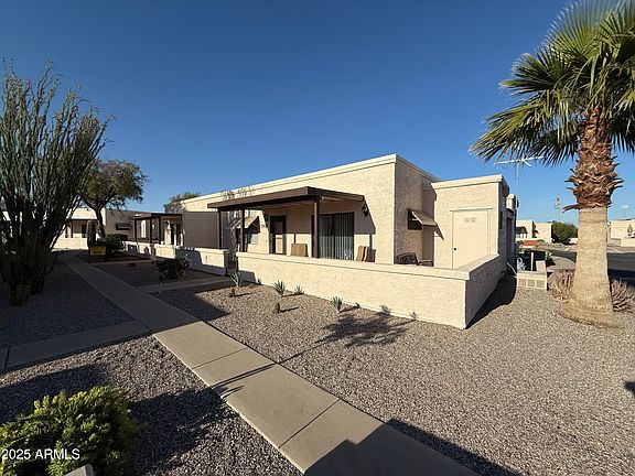 The ultimate low-cost, low-maintenance, full-time or part-time living solution. This is the finest unit to ever come to market. The current snowbird owners purchased this home in November 2021 in its original 1984 build condition, They embarked on updating this unit with no expense spared. Virtually everything in the home was replaced. The patio was tiled, a Samsung 4-piece premium kitchen appliance package was added, quartz countertops, a top-of-the-line water softener, and a new water heater was installed in March 2025. Top-of-the-line Lifeproof vinyl plank flooring, new base and door trim, and the list of updates and replaced fixtures and fittings goes on and on. If you were to buy a 1-bedroom, non-remodeled unit in Vista Hermosa today and embark on a remodel, it would be impossible to bring it up to anywhere near this standard when completed, at the price this home is being offered for. Situated perfectly within the community, not directly facing the resident and guest parking spots with nice desert landscape frontage directly outside the unit. Trash collection, exterior maintenance and landscaping is included in monthly HOA fee. Located in the pristine Vista Hermosa over 55 Community. Sitting high up above the city of Florence with spectacular, 360-degree views. There is a numbered parking spot and ample guest parking. The sun exposure is fantastic, rising on the patio which faces east. Vista Hermosa is a hidden gem offering peace, tranquility, and a front-row seat to stunning scenery. There is a wonderful sense of pride amongst the residents which is evident as you tour the community. Florence has that small old town feel with everything you need not far away. This is a wonderful opportunity to own a turnkey, move-in-ready home. All units and buildings had the roofs redone in 2023 and full exterior paint completed in January 2025. Enjoying the winters spent in Florence so much, the owners decided to make Florence a permanent home and upsized to Sun City Anthem at Merrill Ranch retirement community, hence this home has now come to market.