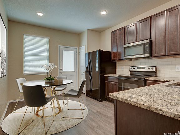 Built in 2023 and barely lived in, this inviting two-story home blends modern comfort with thoughtful design. From the moment you arrive, the brick-and-siding exterior and two-car garage create a welcoming first impression. Step inside, and you're greeted by an open entry that flows into the living and dining areas, where warm vinyl wood-look flooring sets the stage for gatherings both big and small. A convenient half bath just off the main living space adds to the home's everyday ease. The heart of the home is the kitchen, where granite countertops, rich cabinetry, and a full suite of appliances-including a built-in microwave, dishwasher, and smooth-top range-invite you to cook, entertain, and connect. The breakfast bar, accented with tile, opens seamlessly to the living area so you can stay part of the conversation while preparing meals. The primary suite, located on the first floor for privacy, offers a peaceful retreat with a comfortable bedroom and a private bath featuring a walk-in shower and modern finishes. Upstairs, the loft or game room provides flexible space-perfect for movie nights, a home office, or a play area. Three additional bedrooms and a full bath with dual sinks and a tub/shower combination make it easy to accommodate family and guests. Out back, imagine quiet mornings with coffee on the covered patio or lively evenings with friends in the fenced yard. There's plenty of room for play, gardening, or simply enjoying the outdoors. This move-in-ready home brings together fresh finishes, a functional layout, and inviting spaces where you can start your next chapter. Please be aware that some photos have been virtually staged.