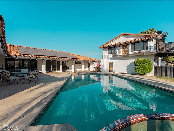 This beautifully updated estate offers 7 bedrooms and 3 bathrooms, sweeping panoramic views that capture the beauty of the surrounding landscape from most of the rooms. Step outside to discover a stunning poolside courtyard, easily accessible through multiple sliding glass doors, creating a seamless indoor-outdoor living experience. The spacious living room features a contemporary stone fireplace—ideal for cozy evenings and relaxed gatherings. The primary suite boasts a private dressing room, dual closets, and breathtaking vistas. In the kitchen, culinary dreams come to life with stainless steel appliances, sleek quartz countertops, and a built-in wet bar, perfect for entertaining. Thoughtful upgrades enhance daily comfort, including a whole-house vacuum system and a generous 3-car garage with extra storage. A covered 2-car carport provides additional parking for guests or larger households.