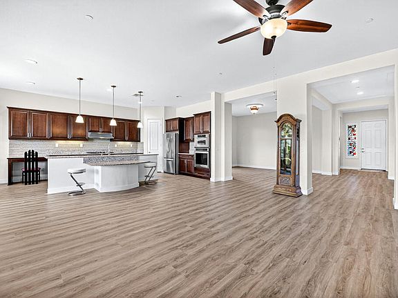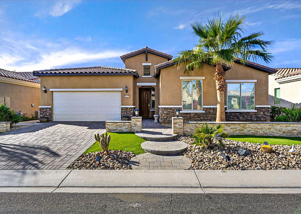 Welcome to resort-style living in this beautifully upgraded Gathering floor plan, located in the desirable Phase 3 of Sun City Shadow Hills. From the moment you arrive, this home impresses with stunning curb appeal, featuring a thoughtfully designed front entry, paver walkways and driveway, modern stone accents, and low-maintenance artificial turf that creates a clean, sophisticated look year-round. Inside, you'll find 2,331 sq. ft. of open, light-filled living space with luxury vinyl plank flooring throughout--a perfect blend of style, durability, and comfort. This well-designed home offers 3 spacious bedrooms and 3 bathrooms. The expansive great room flows seamlessly into the gourmet kitchen, complete with rich cabinetry, granite countertops, stainless steel appliances, double ovens, a large island with seating, and abundant storage--perfect for entertaining or everyday gatherings. Retreat to the luxurious primary suite featuring a spa-inspired bathroom with dual vanities, a soaking tub, walk-in shower, and an oversized walk-in closet. Additional highlights include a beautifully appointed guest bedroom, a separate guest casita-style bedroom with ensuite bath, and ample natural light throughout. Step outside to your private, low-maintenance outdoor retreat featuring an extended covered patio, multiple seating areas, ceiling fans, pavers throughout, a beautiful water feature and a built-in outdoor kitchen--ideal for hosting, relaxing, or enjoying peaceful desert evenings. Located within Sun City Shadow Hills, a premier 55+ community offering two clubhouses, championship golf, fitness centers, pools & spas, pickleball & tennis, social clubs, and endless activities, this home delivers the perfect blend of comfort, style, and active adult living.