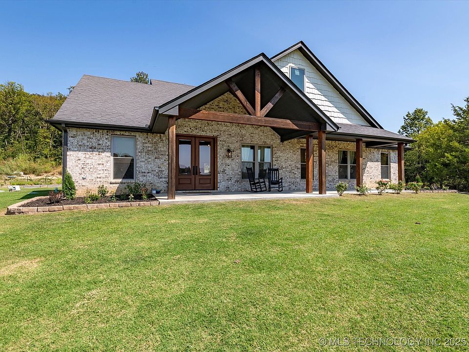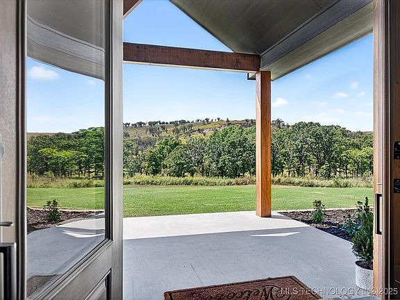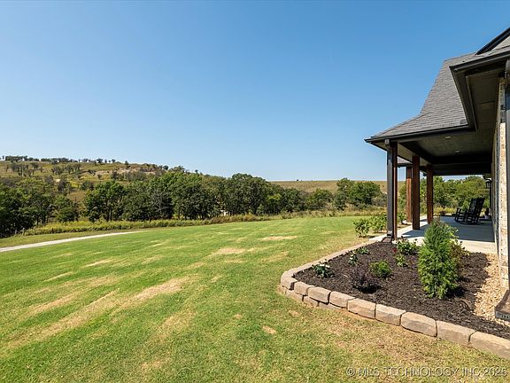 panoramic views, and an exceptional custom-built home. Situated among rolling hills with picturesque sunsets, two creeks, and abundant wildlife. The 3-bedroom, 2.5-bath home is thoughtfully designed with 2"x6" exterior walls and energy-efficient spray foam insulation, ensuring durability, comfort, and lower utility costs. Inside, you will find high-end granite throughout, custom cabinetry, and a spacious kitchen featuring double ovens, an oversized pantry, and a reverse osmosis drinking water system. Nearly every window frames a view of the beautiful natural surroundings. The primary suite includes a luxurious bathroom with dual vanities, a large soaking tub, a separate shower, and a generous walk-in closet that includes a large gun safe. Enjoy serene mornings and evenings from the front and back porches, both offering incredible views of the landscape. The property includes organic fruit trees, blackberries, grapes, and raised garden beds. The 32x36 attached garage features three 9-foot-wide overhead doors, providing ample space for vehicles and equipment. The home is also equipped with a generator hookup, RV hookup, and electric already in place for a future shop. Owner is a licensed Oklahoma real estate agent on inactive status.
