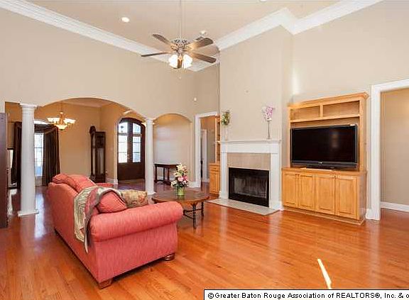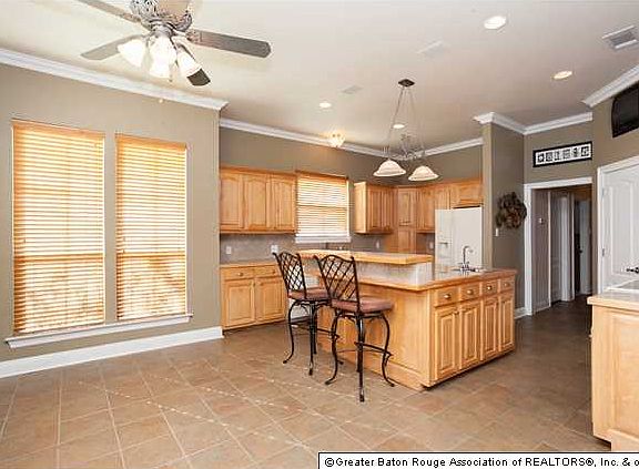 What a fabulous location! If you are a GOURMET cook or just need lots of room. then check this one out! The home features an open floor plan with a triple split floor plan. Gorgeous wood floors in foyer, DR, LR, hall & Master Bedroom! Stacked crown molding in foyer, LR, and DR! The living room has an extra wide opening into the breakfast room. Both have a wall of windows - creating lots of nice light throughout the area. The LR also features a wonderful fireplace w/fluted trim, granite tile surround, & built-ins on both sides. The LR not only features recessed lighting but also 2 spotlights to showcase your art. The kitchen/breakfast area set it apart from the competition! Not only do you have a HUGE island w/raised breakfast bar, but you also have a vegetable sink! Other special features include granite tile counters and back splash, appliance garage, smooth top range/oven, TV cubby (over pantry), & walk-in pantry. There are ceramic tile floors in this area and also in the hall, laundry, half bath, & wet bar. The wet bar/butler's pantry has granite tile counters, glass front cabinet, sink, & wine rack. The laundry has cabinets and sink. The charming half bath has a pedestal sink and is easily accessible to the 4th bedroom. Another special touch - on the way to the garage is another room with finished walls and AC/Heat vent, currently being used as an exercise room. A double door across the hall leads directly outside - making this room a perfect home office! On the other side of the home are bedrooms 2 and 3 - which connect through a bath with a separate tub area. The separate master bedroom is very spacious with wood floors, crown molding, recessed lights, and a corner with windows - perfect for a sitting area. The special master bath has ceramic tile floors, his & her vanities, shower w/seat, deep jetted tub & a walk around closet. You will LOVE outside - a deep covered porch attached to a large open patio - perfect for entertaining.