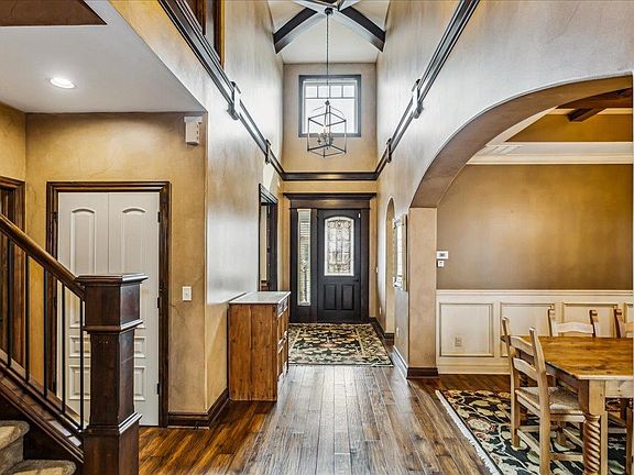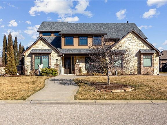 Welcome to a stunning custom-built home on a lovely pond in the prestigious Watercress community. Designed for both luxury and efficiency, this home features blown-in cellulose insulation, custom millwork, solid interior doors, and upgraded windows and doors. Radiant heat flooring extends throughout the main floor, while a soaring wood-beamed ceiling & a fireplace in the living room creates a grand yet inviting atmosphere. Additional thoughtful details include a concrete safe room, custom wood blinds, residential window tinting, and a prewired surround sound system with built-in security. The gourmet kitchen is a chef’s dream, boasting custom cherry cabinetry, stainless steel appliances, and two spacious islands. Granite countertops, a built-in wine cooler, a granite-topped hutch, and under-and over-counter lighting enhance both function and style. A walk-in pantry provides ample storage, and 12-foot ceilings add to the open, airy feel. The master suite is equally impressive, featuring a tray ceiling, wood floors, an expansive walk-in closet with a built-in dresser and wall safe. A spa-like ensuite bath boasts a soaker tub and custom walk-in tile shower, complete with a seat and glass door. The main floor is also complimented by a designated office with French doors (could be 5th bedroom), closet and a connecting 1/2 bath. An additional bedroom with an ensuite bath and a spacious separate laundry room can also by found on the main floor. Upstairs you will find a loft area, 2 bedrooms & a full bath that is accessed from one of the bedrooms and the loft area. The oversized garage offers radiant heated flooring, insulated doors and walls, and two drop-down attic stairs with lighting and floored storage. Outside, the professionally designed landscaping includes a sprinkler system with an irrigation well and also a water feature with a disappearing waterfall at the front door. A zero-entry step on the main floor ensures accessibility, while 2 private stonework courtyards and wrought iron fencing create a serene retreat. Located in a cul-de-sac surrounded by elegant estate homes and with beautiful pond views, this one-of-a-kind residence is the perfect blend of sophistication and comfort. Schedule your private showing today!