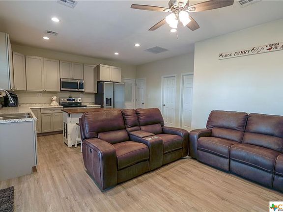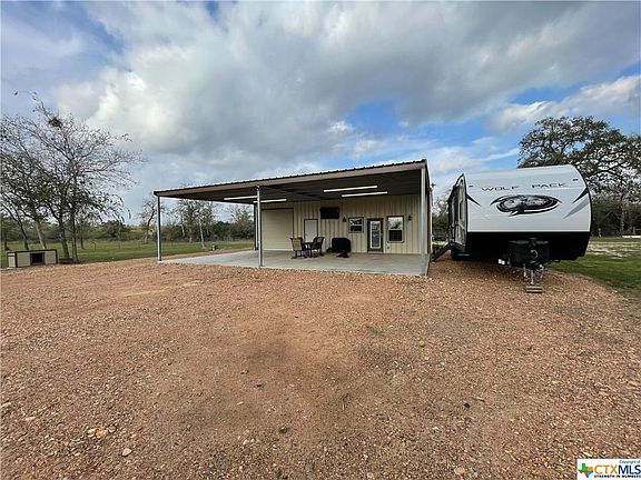 A little piece of country perfect for that weekend get away or full time living! Once you enter the gate, it's time to enjoy just less than 2 years old barndominium sitting on 1.5 acres of fenced land just minutes from Victoria, Goliad or Cuero. One bedroom, one bath with open living and kitchen area. Nice laundry room with sink. Metal building was built by Victoria Steel Erectors with expanding in mind on both sides. 50 & 30 AMP RV hook ups available. Storage building! Carport across entire front is perfect for vehicles and/or outdoor entertaining.