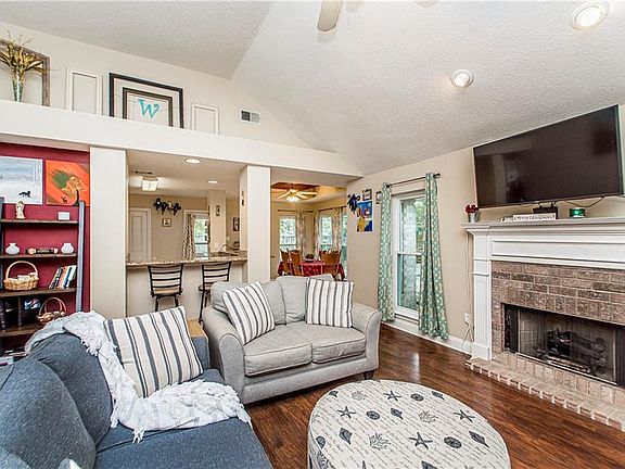 plan, neutral paint throughout, vaulted ceilings and cozy fireplace in living room, no carpet, laminate floors throughout, granite in