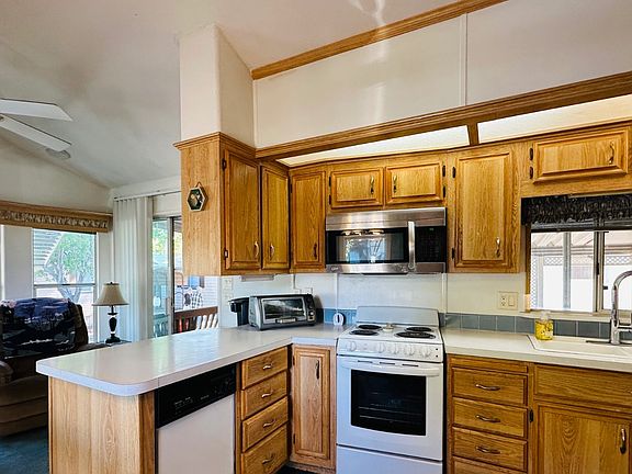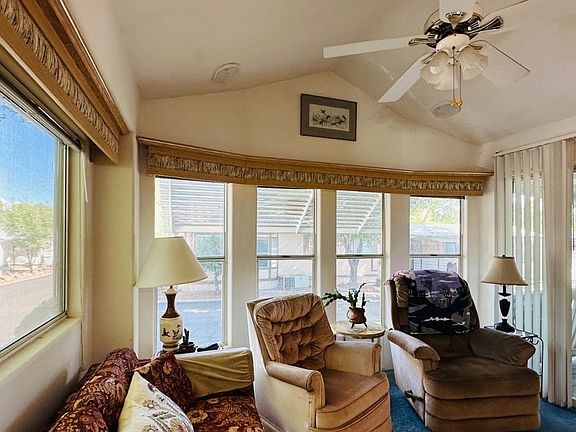 This charming 2-bedroom, 1-bath park model offers the perfect blend of comfort and functionality in a serene wooded setting. Nestled on a desirable corner lot, this 1998 Chariot Eagle home has been thoughtfully renovated with modern upgrades including a new heat pump, all-electric conversion, and convenient in-shed laundry. The inviting covered deck and private fenced yard with a fruit tree make it ideal for enjoying Rim Country's mild climate and mountain views. Inside, you'll find a bright pass-through kitchen, spacious living area, and built-in cabinetry that maximizes storage. Relax on your shaded porch or entertain on the patio surrounded by mature trees. Located in Lamplighter's 55+ community with amenities like a gym, recreation room, and pet-friendly atmosphere, it's the perfect spot for full-time living or a seasonal getaway. Lot rent of $570 includes water, sewer, and access to community features. Available November 1, 2025-move in and start living the good life. #LamplighterCommunity #RimCountryRetreat #StarValleyAZ #ManufacturedHomeLiving #MesaSnowbirds #AZMountainHomes #55PlusLiving #AffordableRetirement #ParkModelHome