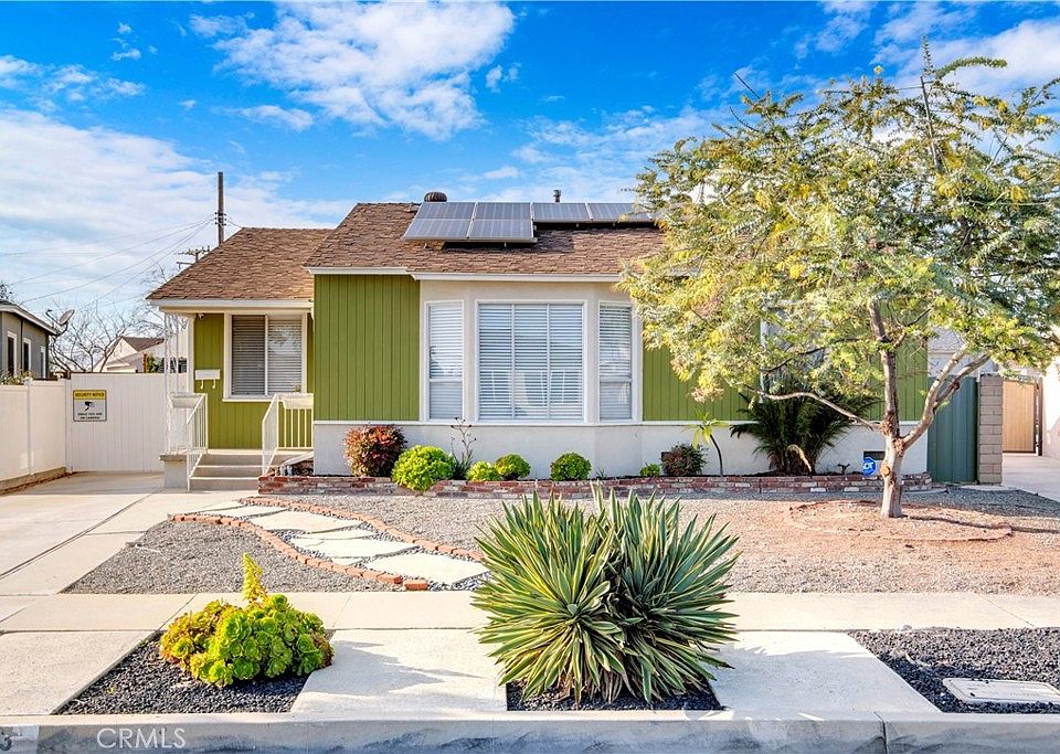 Traditional 3 bedroom, 1 bath single family home built on a 8,500 square foot lot. Professionally refinished hardwood original flooring throughout and new interior paint. This home is equipped with solar panels, Central HVAC and window coverings. Property is well maintained and landscaped with new sprinklers to minimize water usage and maintain a lush backyard with fruit trees and a covered attached back patio. Backyard is fenced in with a block wall for privacy. There is a separate 2 car garage with a gated driveway. This is a must see! The oversized lot is amazing and a hard-to-find gem in the City of Lakewood.
