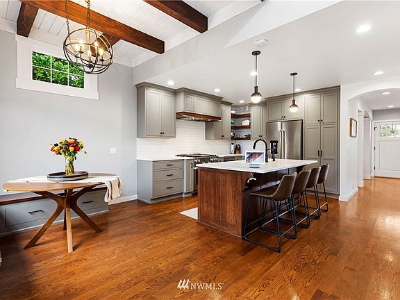 Sophisticated & flexible floor plan perfect for formal entertaining & casual great-room living. Soaring exposed beam ceilings and walls of windows bring incredible light throughout this home. Rare master suite on the main. Two upstairs bedrooms one with a wrap-around closet perfect for a kid-zone or extra-large wardrobe and second bedroom has plenty of closet space as well! A second alternative is utilizing the entire top floor as your sound view master retreat. Huge shop w/400 AMP svc. with easy conversion possibilities into a rec room or media room. AND a sleek 1bd w/separate entry & kit. Gas FP, H20 circ sys, instant hot H20, wired for sec sys, cable, fans.