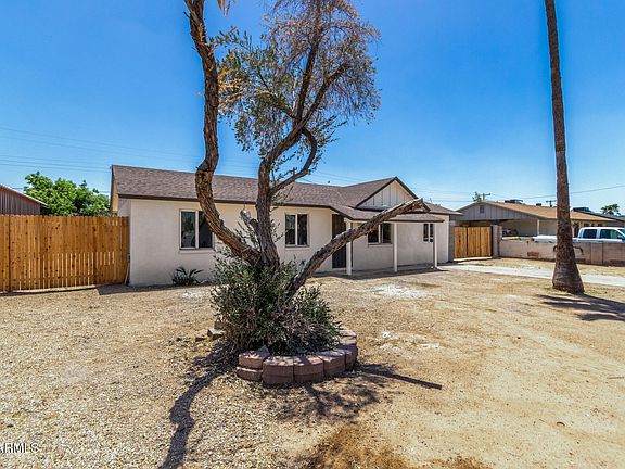 Come check out this TASTEFULLY REMODELED home in a great Phoenix location! New AC!! Its charm starts with a large front yard, a front porch, and an RV gate for secure parking. The highly upgraded interior boasts clean lines that promote a modern feel! New wood-look flooring in common areas, a neutral palette, tons of natural light, new ceiling fans & lighting fixtures are some features that can't be left unsaid. The renewed kitchen boasts new SS appliances, quartz counters, and white shaker cabinets. New plush carpet adds comfort to the perfectly sized bedrooms! The primary and secondary bathrooms have been updated with new fixtures. The spacious backyard is waiting for your creative ideas! With room for a pool, you can make it a complete outdoor oasis. Freshly painted inside & out!