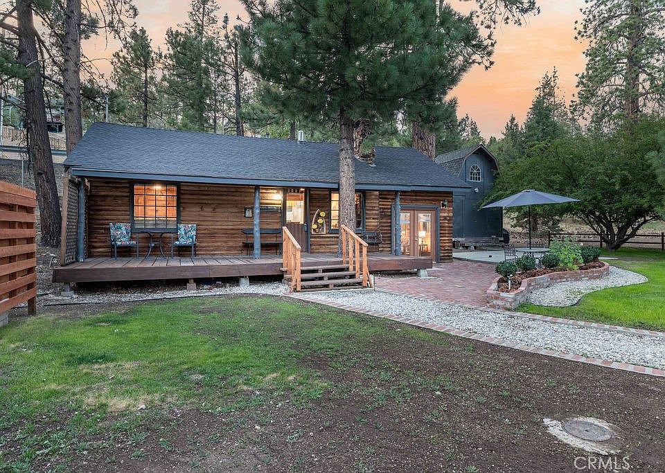 Charming affordable lakefront property located on beautiful Grout Bay in Fawnskin! Beautiful rustic home includes 3 bedrooms, 2 full baths, hardwood floors throughout, separate laundry area, and a light and bright kitchen! The third bedroom has its own entrance and bathroom and is currently set up as a studio type room with a futon, desk, refrigerator, microwave, and coffee bar, although it could be an office, home gym, or whatever you'd like! Gather around the fireplace in the cozy living room on those chilly mountain nights and relax and enjoy the ambiance! The front porch and patio area make for a great place to enjoy the crisp mountain air, entertain guest and watch the wildlife! The famous Big Bear bald eagles nest home to Jackie and Shadow is located in the forest just across the bay! This wonderful lakefront property sits just below Captain Johns Marina with only two other homes in the bay and has a shared dock and beach area with the neighbor directly next door. Plenty of parking for you and your guest as well as a storage shed! Newly paved access road down to the property, newly seeded lawn and sprinklers! Don't miss out on this wonderful opportunity to have your very own slice of mountain paradise! Just in time for the holidays! Don't wait! Start making memories now with your family and friends!