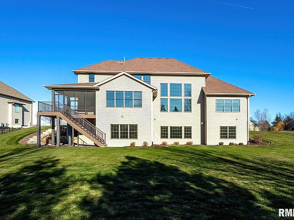 Bettendorf immaculately maintain 6 bedroom, 4.5 bath, 1.5 story home in PV schools. Features a stunning chef's kitchen with granite countertops, oversized center island with breakfast bar, hidden butler pantry and huge dining area that flows with kitchen and great room. Large efficient mudroom with separate outdoor entrance and main floor laundry. Office with fireplace and glass french doors. Main level suite with large walk-in closet, lighted tray ceiling and bath featuring tiled walk-in shower and double vanities. Open staircase takes you up to 3 bedrooms, each with bath access. Walkout finished lower level has huge rec room with fireplace, game area, and custom kitchenette/bar; 5th bedroom and bathroom with a 6th room that could be used as a bedroom/exercise/game room area. Enjoy the gorgeous view on the screened-in porch off dining area overlooking a large .71 acre lot. Irrigation system, surround sound, and custom window treatments round out this one of a kind home. This home may save time and money compared to building new construction.