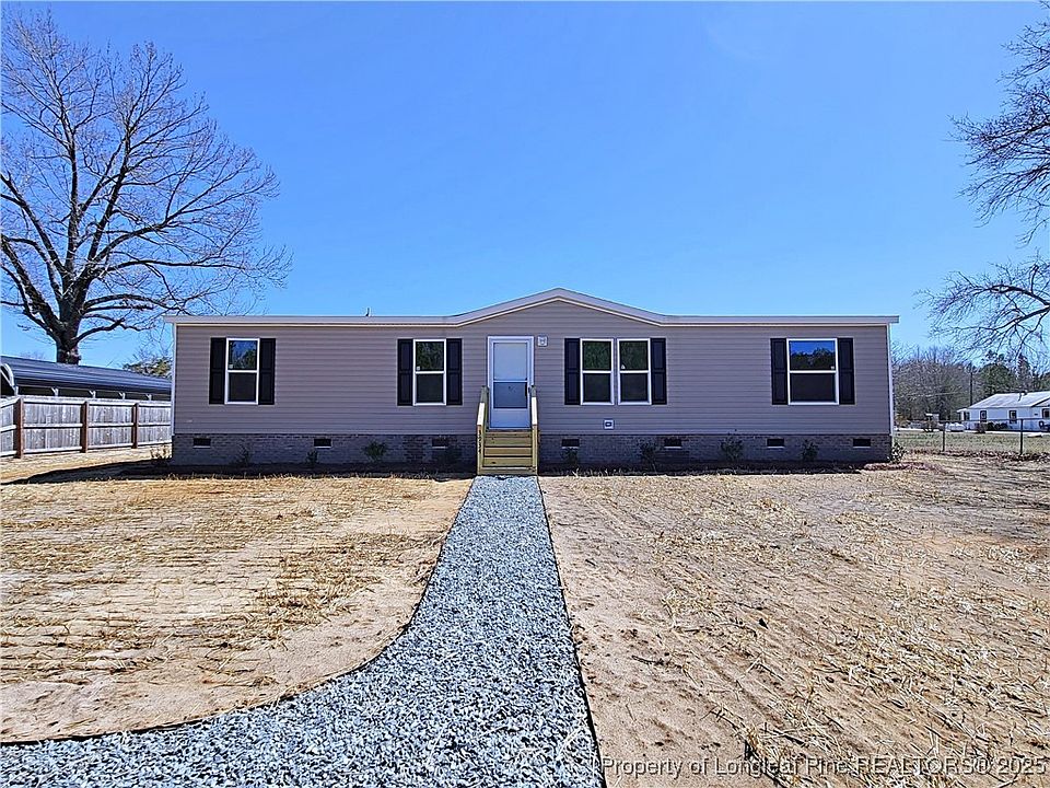 Brand New Manufactured Home on a large lot in Wade. 4 bedroom/ 2 bathrooms with an open layout. Seller is offering $7,500 incentive towards closing costs. These homes also come with a 1 yr warranty.