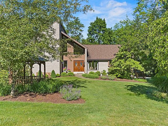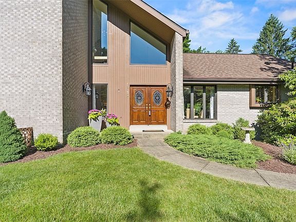On parklike acre in Hampton School District, find this exceptionally updated contemporary home. Covered entry welcomes guests thru dbl door to 2 story entry w/hardwd flrs. Loft overlooks great rm where soaring, vaulted ceilings, 2 story stone firepl & wall of windows are highlights. Also find quiet study w/hardwd floors & slider to patio. No detail missed in renovated, well appointed eat in kitchen w/tile backsplash, granite counters, stainless appliances & side prep area. Convenient laundry around the corner. Din Rm perfect for entertaining w/hardwd floors & bay window seat. Large slider opens to incredible sunrm to deck overlooking flat back yard. 1st floor owner's retreat features walk-in closet, private deck & spa-like bath w/dbl bowl vanity, bubbling soaker tub, & curbless tile shower. Upstairs, find 2 lrg bedrms w/plenty of closet space & hall bath. Low lev finished w/gamerm, additional bedrm & features workshop. Oversized 3 car grg is perfect for the automotive enthusiast.